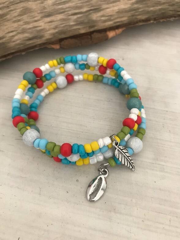 We gaan aan de slag met memory wire en kralen om hier een mooie armband/enkelband met 3 rijtjes van te maken. Daarna mag je 2 bedeltjes aan de uiteinden hangen