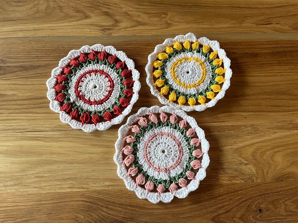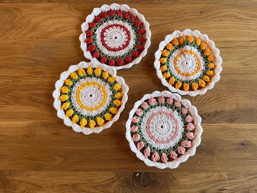 Wie gebruikt ze niet? Onderzetters beschermen de tafel tegen vocht en vuile kringen. Ze zijn ook leuk om te haken. En geweldig om cadeau te geven omdat ze makkelijk zijn om te haken.