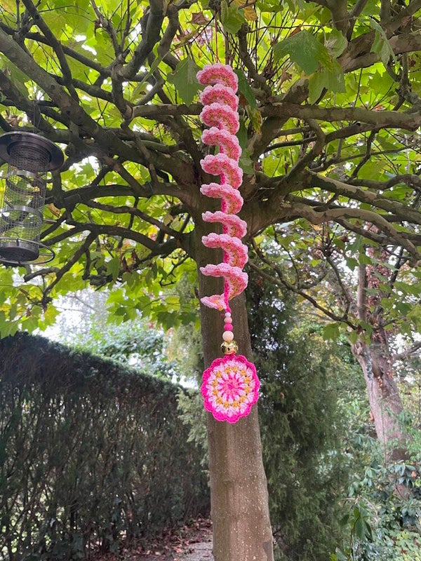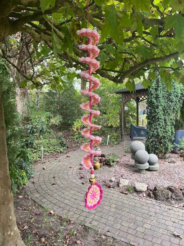 Lijkt het je leuk om zélf een windspinner zoals deze te maken? Of juist iets helemaal anders? Kijk dan eens bij mijn haakpatronen. Misschien zit daar iets voor jou tussen