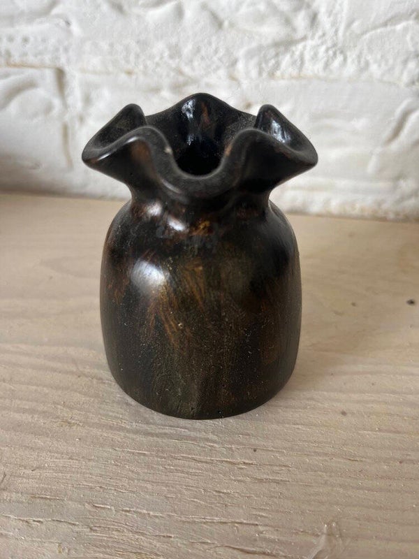 Dit vaasje van gips is strak met een mooi speelse rand.