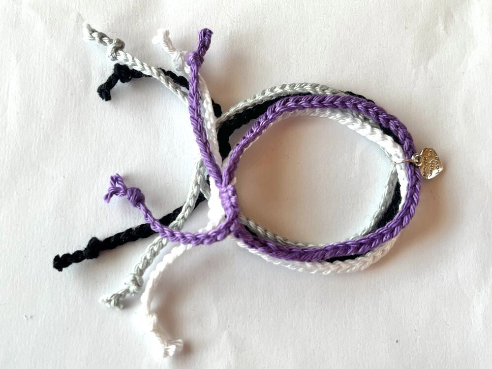 Setje van 4 verstelbare armbandjes in de kleuren van aseksuele pride vlag: