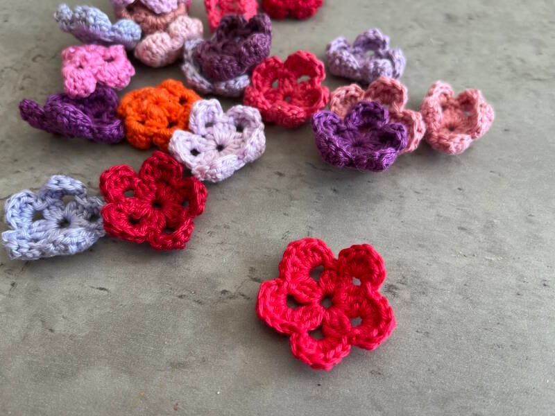Ik haak deze bloemetjes altijd zelf in allerlei leuke kleurtjes. Ze zijn echt favoriet bij de kinderen. Ik krijg altijd te horen dat ze zo leuk zijn.
